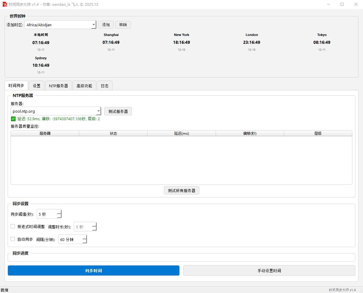 -支持多个内置NTP服务器(Windows时间服务器、阿里云、NIST等)