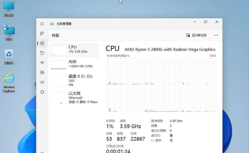 User 安装完毕 C 盘占用 5G 左右 首次进入桌面进程优化控制在 60 左右浮动