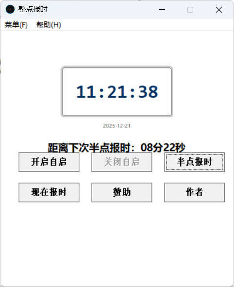 程序界面设有清晰的数字时钟,实时显示当前时分秒与日期,下方还会贴心标注距离下次报时的剩余时间,让等待不再模糊。